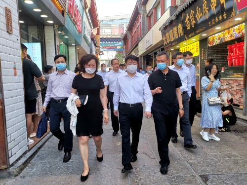 6月3日下午,张德平厅长到济南泉城路调研步行街改造提升工作。先后实地考察了宽厚里、芙蓉街、泉城路主街、红尚坊等现场,随后召开座谈会,听取泉城路商业街建设有关情况介绍,并与济南市、历下区、街区管理机构及所在街道的有关负责同志座谈交流,听取意见建议。张德平厅长指出,步行街改造提升作为扩消费的重要抓手和平台,党中央、国务院高度重视,省委、省政府提出明确要求,泉城路拥有丰富的商业资源、历史文化资源,基础很好,要坚持高起点规划,科学论证,学习借鉴先进省市的经验做法,积极推动改造提升,尽快见到成效,把泉城路打造成全省步行街改造提升的样板。