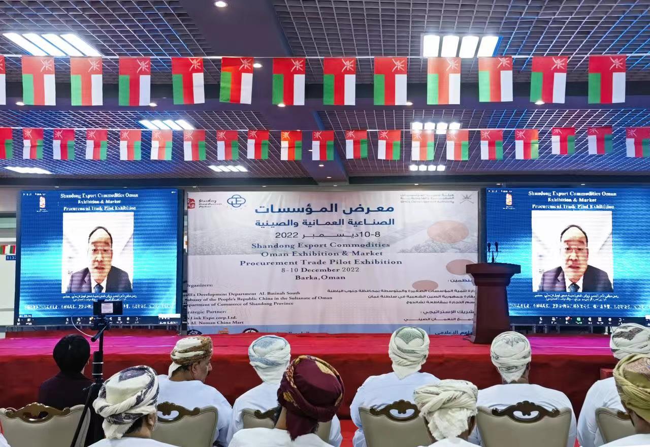12月8日下午14:00,山东出口商品(阿曼)展览会暨市场采购贸易试点展览会在阿曼巴尔卡市开幕,中国驻阿曼苏丹国大使馆商务参赞谢中妹、阿曼巴尔卡市市长阿卜杜拉、阿曼中小企业发展总局副局长尤努斯•纳绥热、阿曼中小企业发展总局南巴提奈区局长费萨尔•阿卜杜勒•阿齐兹•阿尔扎得加里、阿曼儒商会会长包有增线下出席开幕式,山东省商务厅副厅长张型成线上出席并致辞。 山东出口商品(阿曼)展览会暨市场采购贸易试点展览会是2022年山东境外百展计划重点活动之一,是我省首次在阿曼举办的综合性国际展会。本次展会自12月8-10日为期3天,我省共组织时风集团、特亚钢铁、大汉科技等30家企业参展,涉及机械、建材、机电、纺织、食品等行业。阿曼中小企业局、阿曼儒商会组织阿曼40家企业参展,总展位70个,现场展馆面积达1500 平米,邀约阿曼专业采购商3000多家,开幕式当天展馆客商流量近8000人次。 |